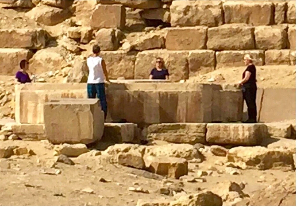Our last activation for this time was at the sun temple in Abu Ghorab. Here we activated Germanium along with the crystal Danburite and plant oil Blue Lotus. As we did this we saw a central column arising and spinning causing a feeling of lightness and freedom. One of our group saw a dodecahedron shape which then merged together to form the star tetrahedron shape which signifies the beginning of life and movement thus mirroring the purpose of this ancient temple which is said to be where the sun first touched the earth to bring it into being.